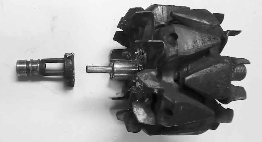 4. Сняли шкив и выдавливаем на прессе ротор генератора.