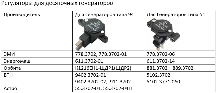 В генераторах 5122 применяются регуляторы напряжения типа 611.3702-14 и его клоны