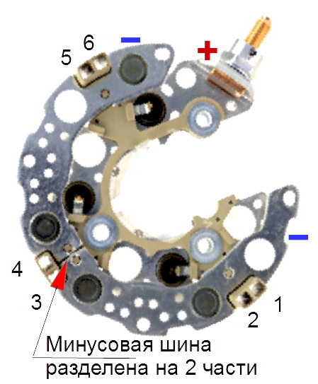 Для генераторов мощностью 120 -150А применяются диодное мосты на 12 диодов. Для генераторов меньшей мощности применяются на шесть диодов (реально 7 диодов,).